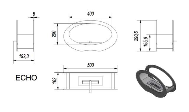 favorite email | Код товару: 1691 | Біокамін Kratki ECHO CZARNY |