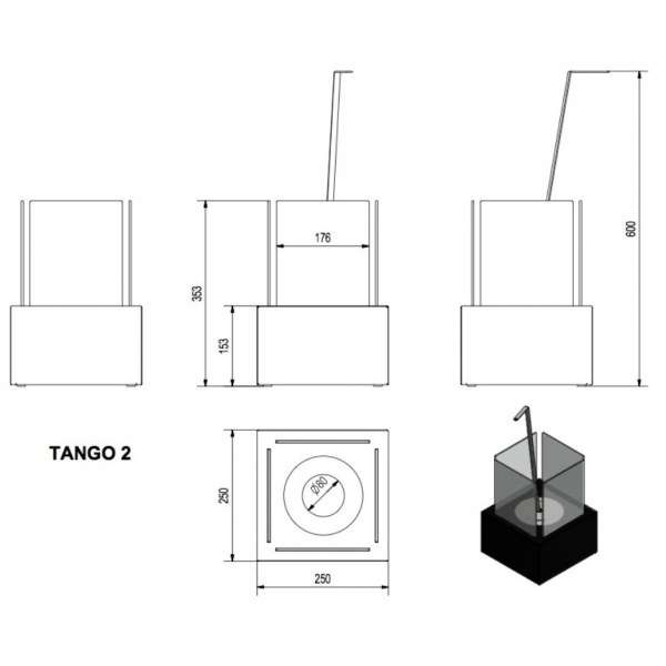 Біокамін Kratki Tango 2 Bialy - модель для підлоги з круглим пальником, виконана з вогнетривкого скла і високоякісної сталі зі спеціальним порошковим покриттям.