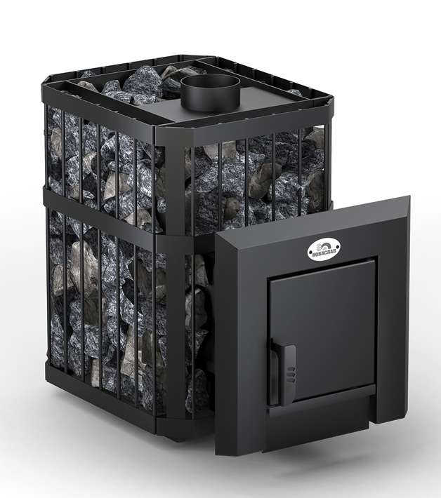 Дров'яна піч з металевим кожухом - конвектором Новаслав ПКС 01,02,04 П (Пруток) (з виносом) - відповідно обсяг парильні до 12/18/26 м3 - продумане ефективне рішення для сучасної парної.