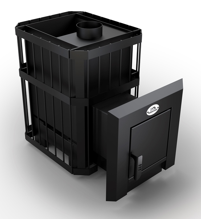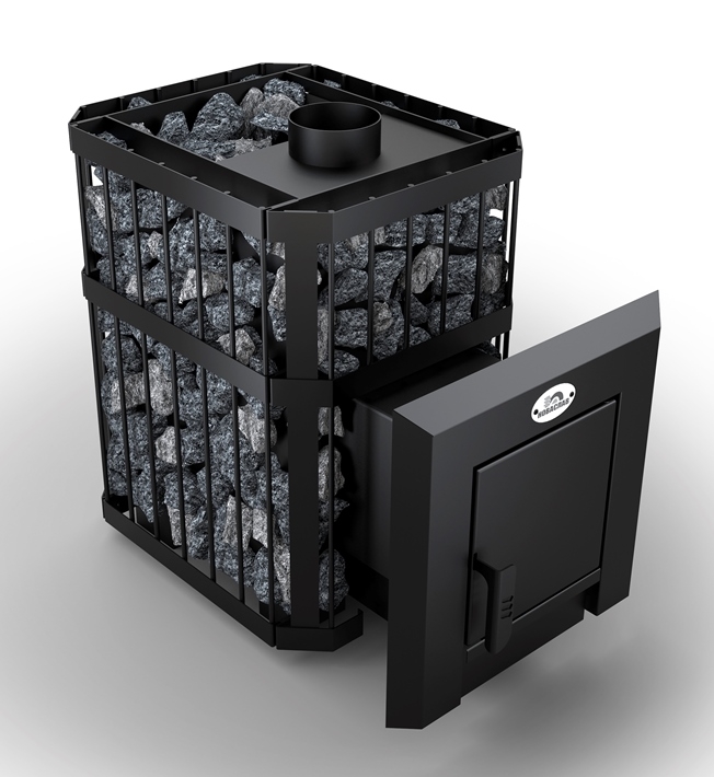 Її головна відмінна особливість - рівномірний прогрів парильного приміщення і підтримка необхідної температури за допомогою збільшеної кількості нагрітих каменів до 160кг, що закладаються в сітку навколо всієї топки печі.