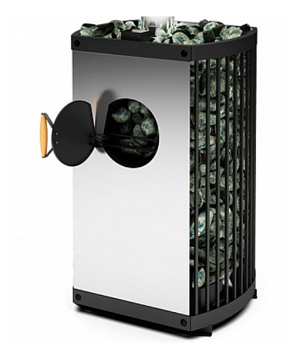 • Також у конструкції передбачені дверцята на паровій гарматі, яка дозволяє регулювати швидкість набору температури каміння та парної.
