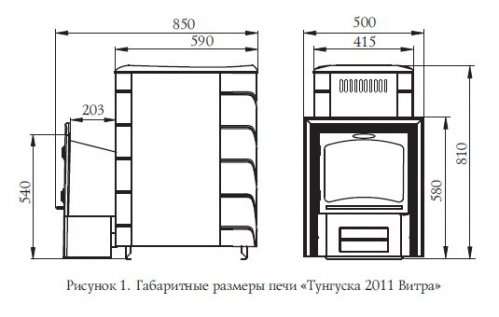 - Поліпшено умови проходження повітряного конвекційного потоку. Замість проходження через вентиляційні отвори в кожусі повітря вільно виходить по всьому верхньому периметру печі. У печі реалізована концепція термічної рівноміцності. Товщина деталей топки, схильних до найбільшого термічного і механічного навантаження збільшена в 1,5 раза. екранує інфрачервоне випромінювання від топки. Технічні характеристики Дров'яної печі для лазні ТермофорТУНГУСКАVITRA Антрацит (з виносом) з панорамним склом