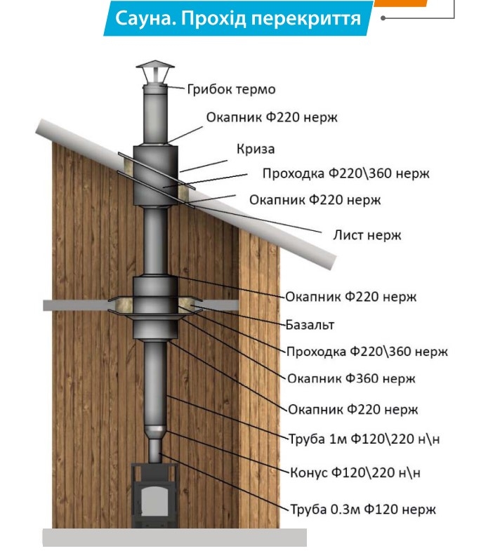 | Димохід для лазні - Двостінний Термо (ф120/220 мм) - (0,5 мм-AISI 304) - нерж/нержКод товару: 437|