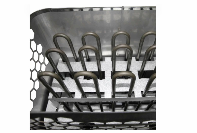 Матеріал печі - нержавіюча сталь марки AISI 201, має підвищену корозійну стійкість та високу теплову ефективність. Пічка оснащена унікальним нагрівальним елементом із сертифікатом UL. Сертифікат UL – це підтвердження того, що ТЕН безпечний з точки зору конструкції та матеріалів.
