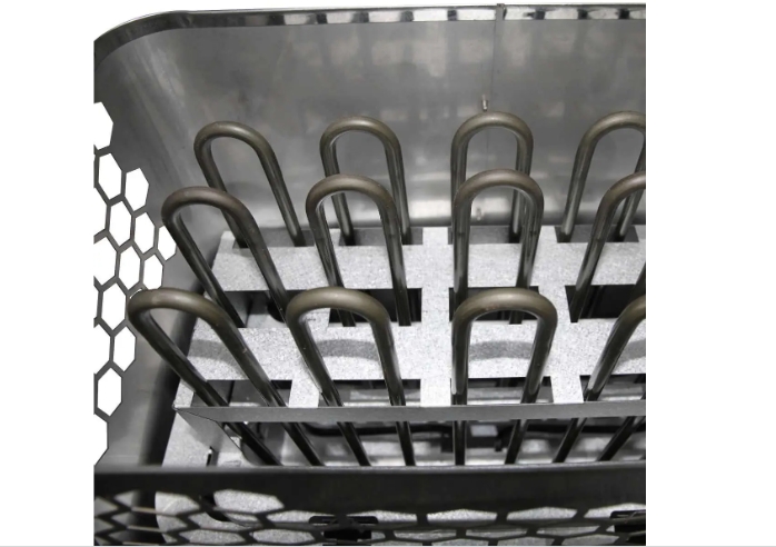 Усередині каменки встановлені гальванізовані оцинковані пластини, завдяки яким відбувається посилення та збільшення жорстокості усієї конструкції.