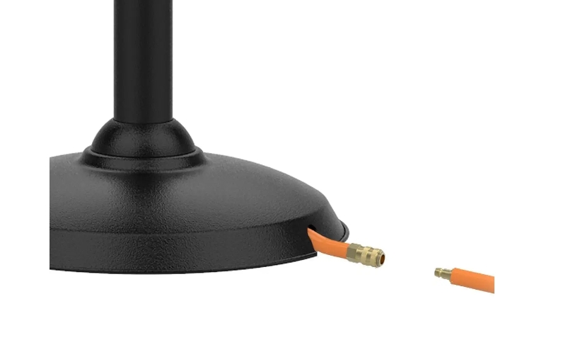 Шланг оснащений швидким з’єднанням для легкого від’єднання та виймання балону, коли шланг пропускається через отвір основи обігрівача;
