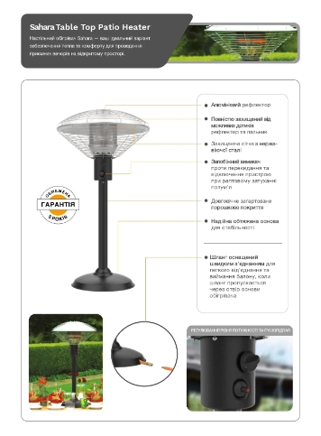 Настільний обігрівач Sahara Table Top Patio Heater — це ваш помічник для збереження тепла та комфорту під час проведення приємних вечорів з близькими людьми на відкритому просторі.