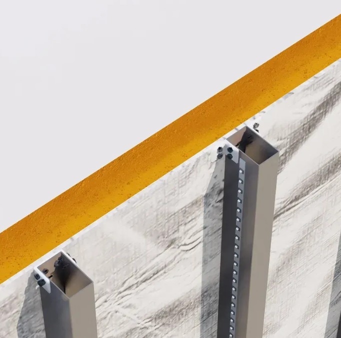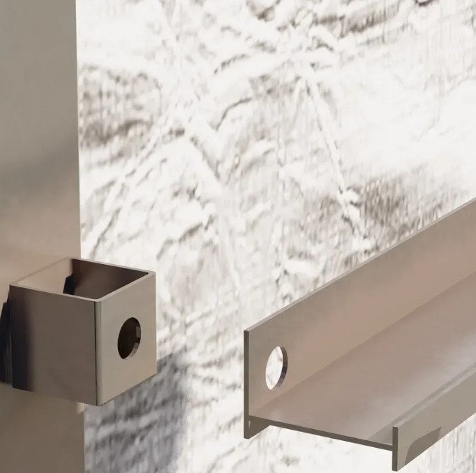 Цегла або плитка з прорізом кріпиться за допомогою спеціального алюмінієвого профілю (напрямної).