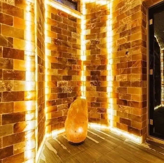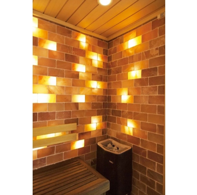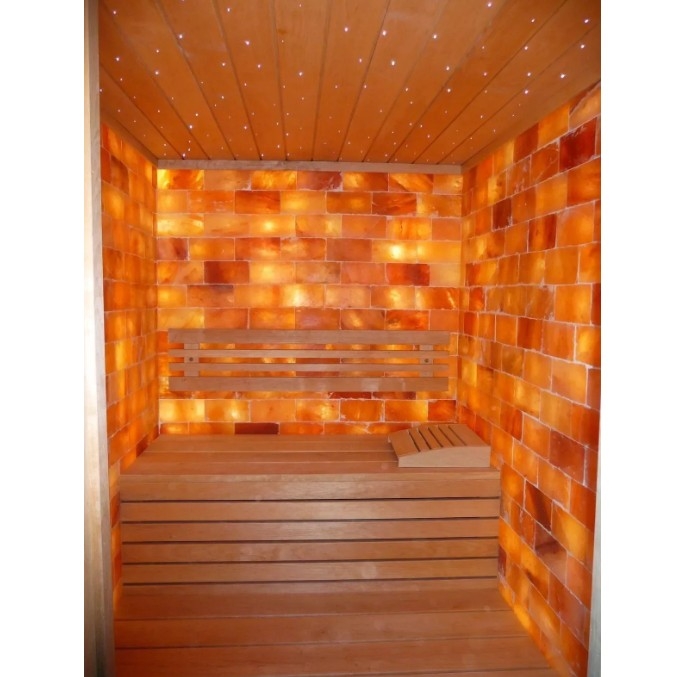 Обробка стін та стель: Соляна плитка з пропилом використовується для облицювання стін та стель в лазнях, саунах, кімнатах відпочинку та інших приміщеннях.