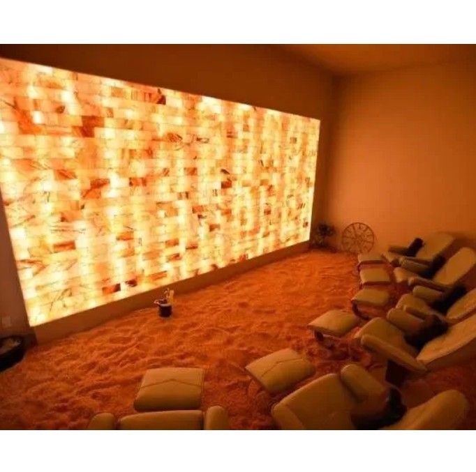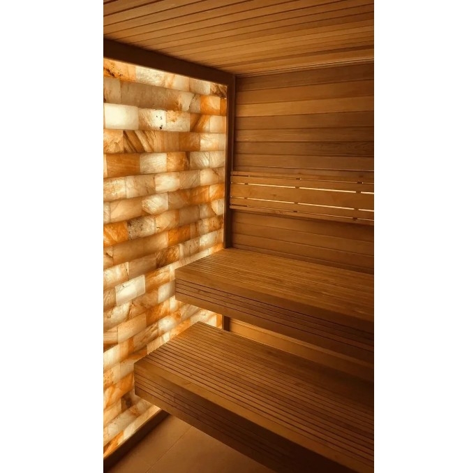 Обробка стін та стель: Соляна плитка з пропилом використовується для облицювання стін та стель в лазнях, саунах, кімнатах відпочинку та інших приміщеннях.
