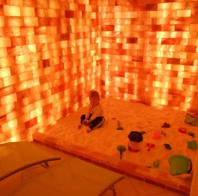 Створення соляних кімнат: Соляні кімнати з соляної плитки з пропилом мають оздоровчий ефект на людей з захворюваннями дихальної системи, алергією та шкірними захворюваннями.