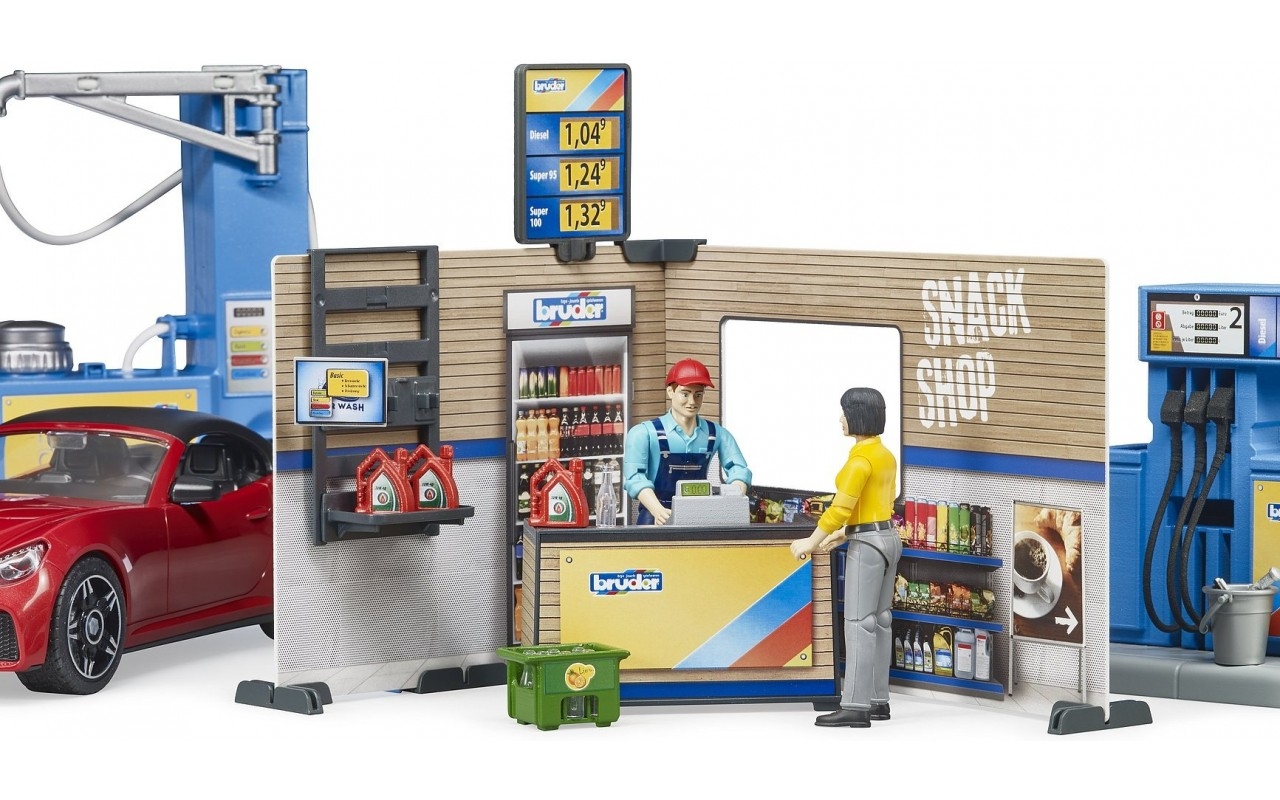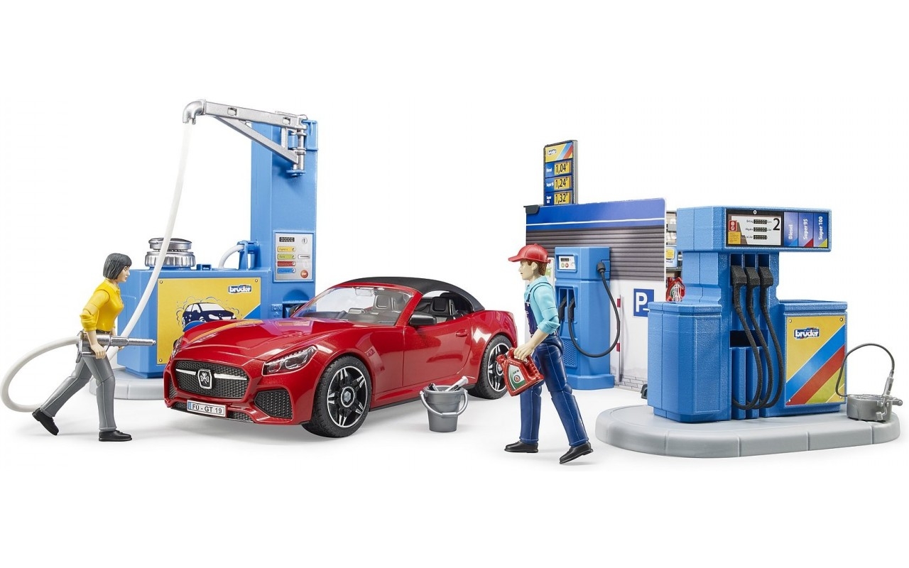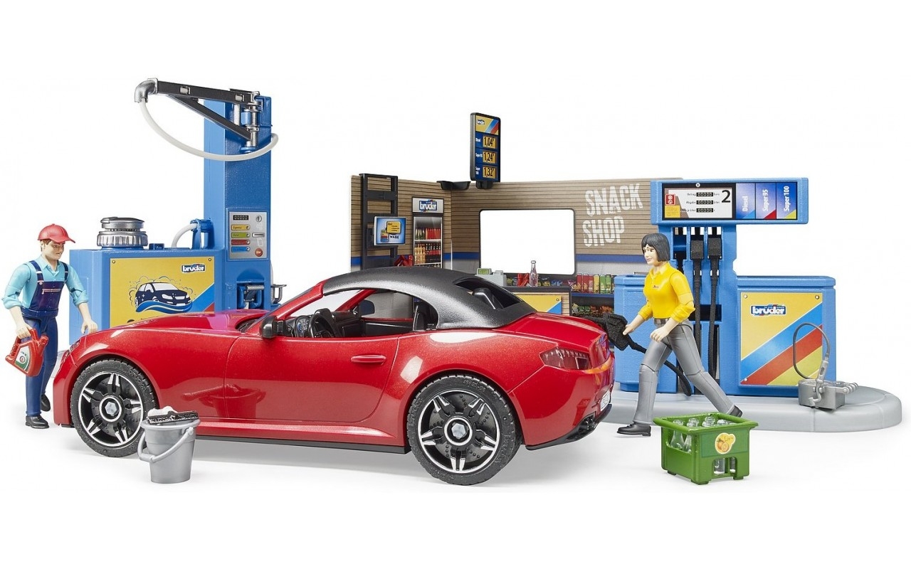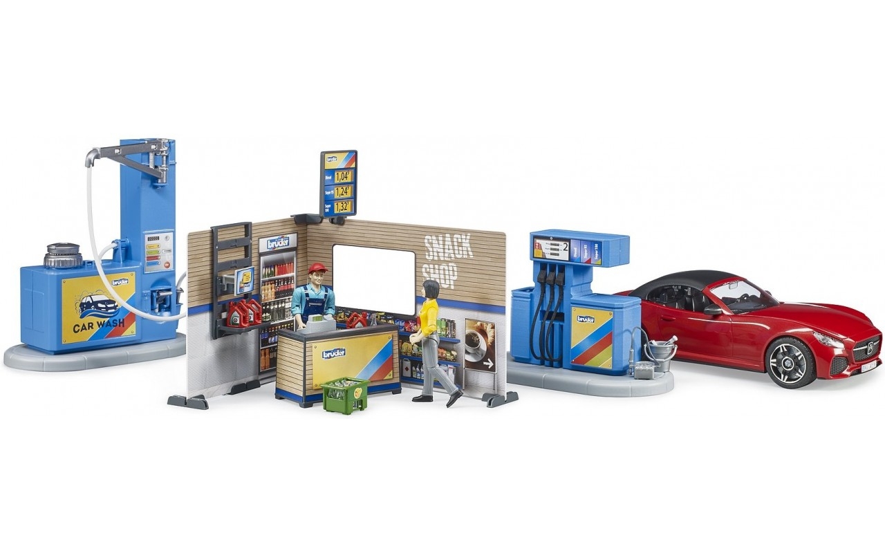 Ігровий набір BRUDER АЗС з автомийкою, автомобілем та фігурками (62111)