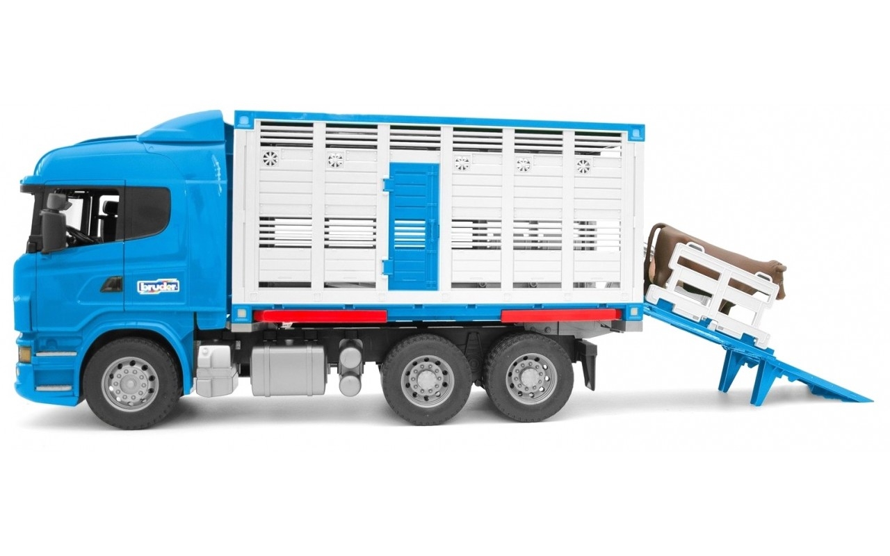 Іграшка BRUDER Фургон SCANIA для перевезення тварин із фігуркою корови 1:16 (03549)