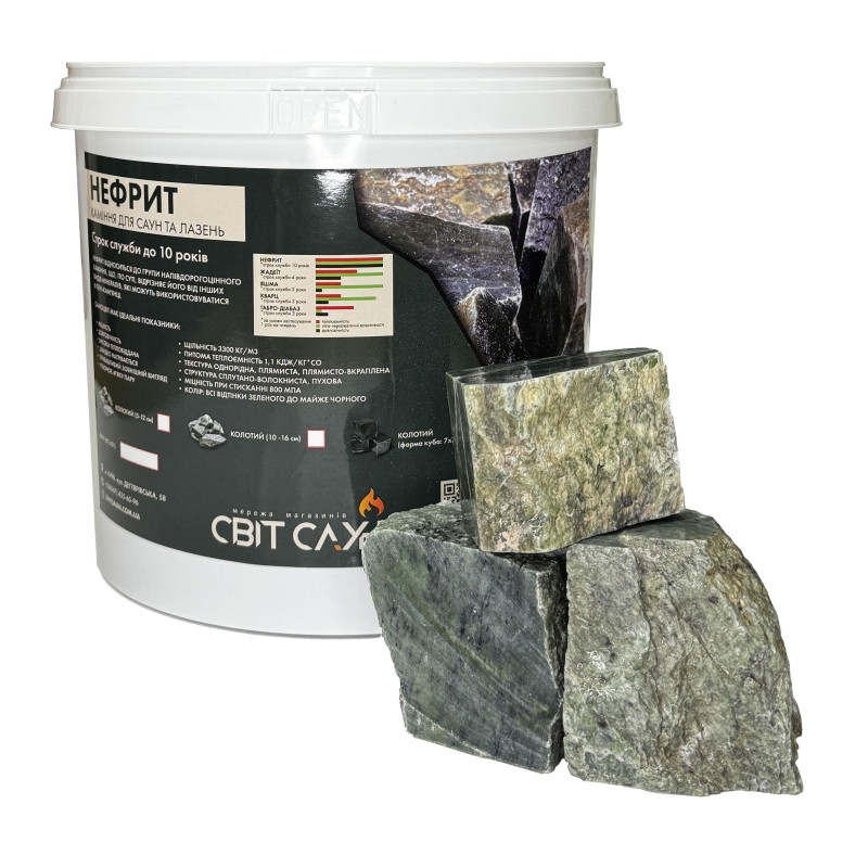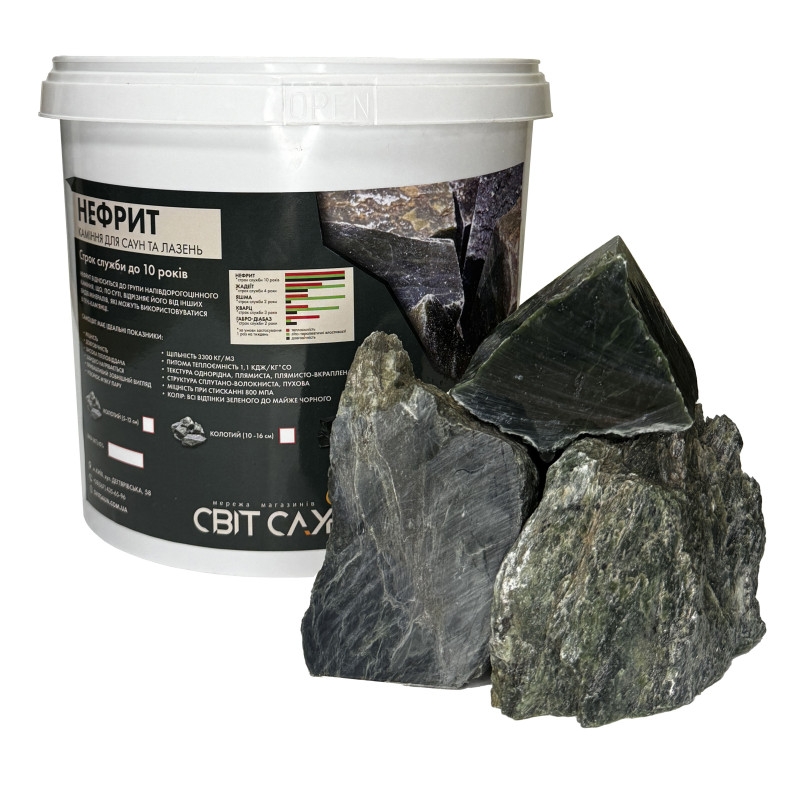 - Порода каміння: Каміння Нефрит для сауни та лазні
