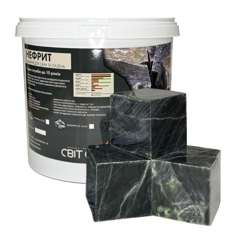 - Порода каміння: Каміння Нефрит для сауни та лазні