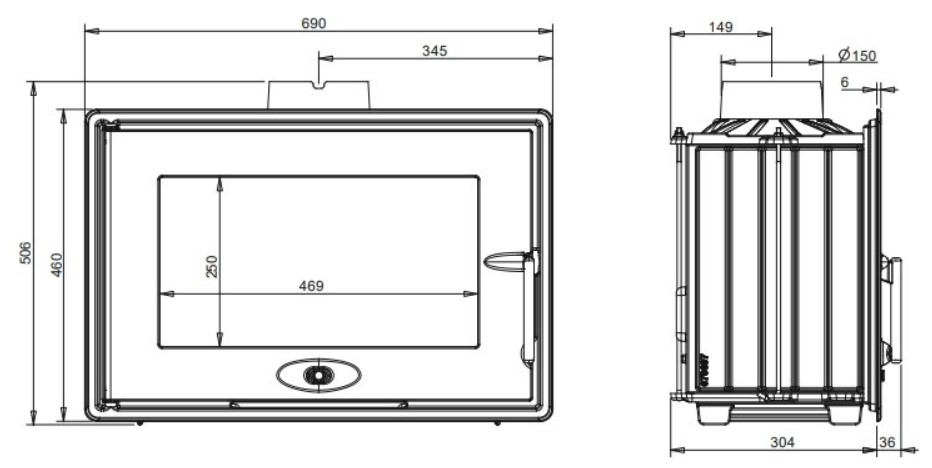 Невисокий димозбірник дозволяє легко монтувати дану топку в існуючий відкритий камін. лазнях і саунах.