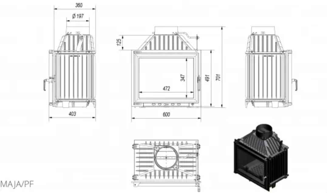 Камінна топка Maja 12 кВт - невелика чавунна топка з бічним відкриттям дверцят, ідеально підходить для маленьких приміщень. >знімна "холодна" ручка