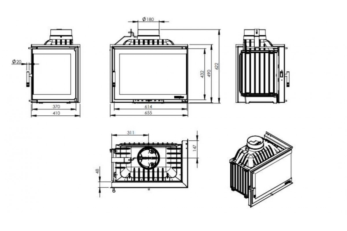 5. Можливість подачі повітря як і через зольний ящик, так і підвід з вулиці. Для правильного та ефективного функціонування камінної топки потрібна постійна подача повітря у камеру згорання.
