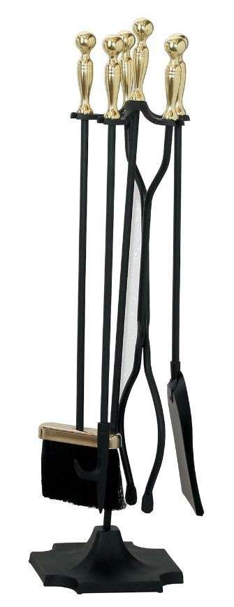 Про товар:Камінний набір Т41111РК чорний/золото висотою 73,5 см, що складається із щітки, кочерги,совка та щипців. |