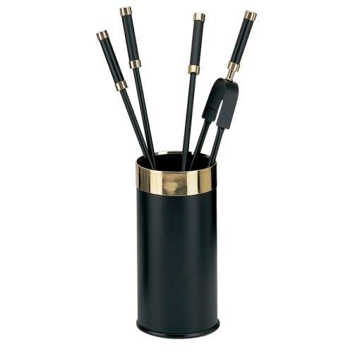 Про товар:Камінний набір Т41111РК чорний/золото висотою 73,5 см, що складається із щітки, кочерги,совка та щипців. |