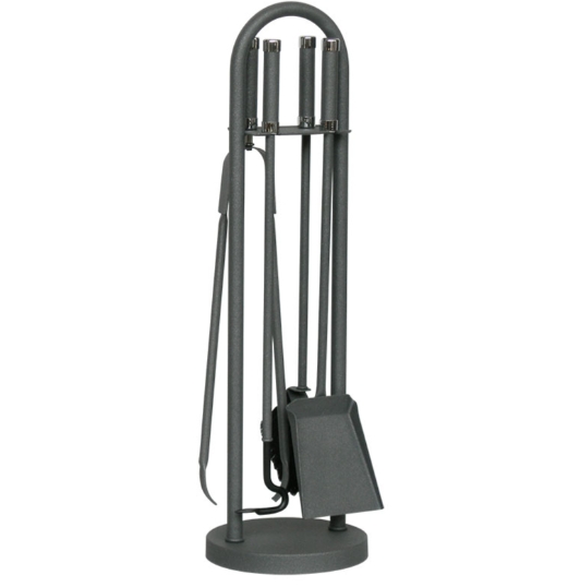 Включає стійку і чотири елементи: зручна щітка, кочерга, щипці і совок. Всі інструменти мають зручне кріплення на стійку.