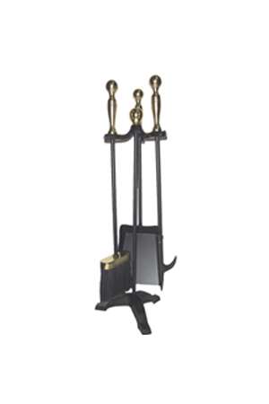 Про товар:Камінний набір Т41111РК чорний/золото висотою 73,5 см, що складається із щітки, кочерги,совка та щипців. |