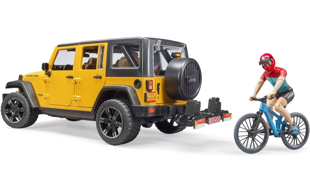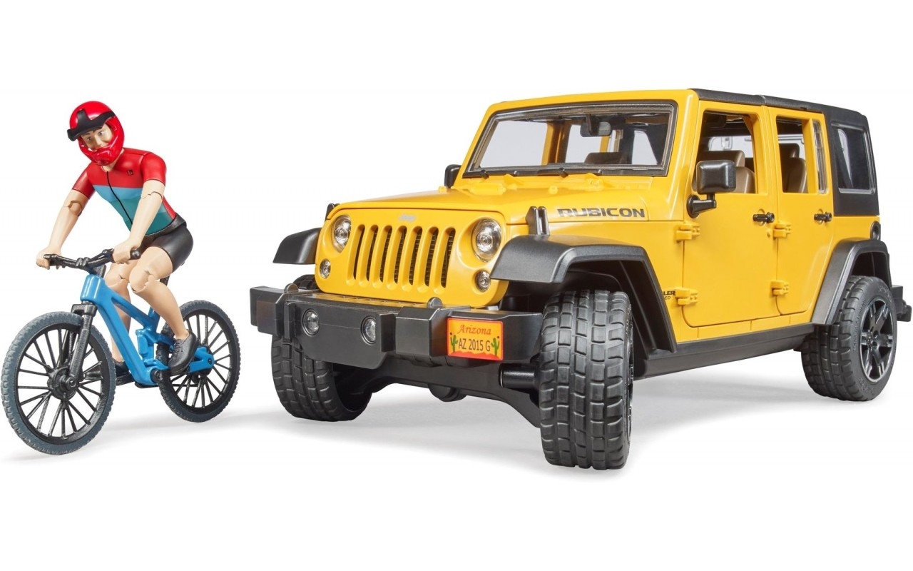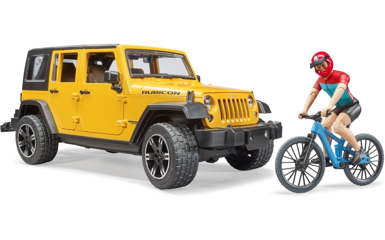Машинка Bruder Джип Jeep Rubicon з фігуркою велосипедиста на спортивному байку (02543).