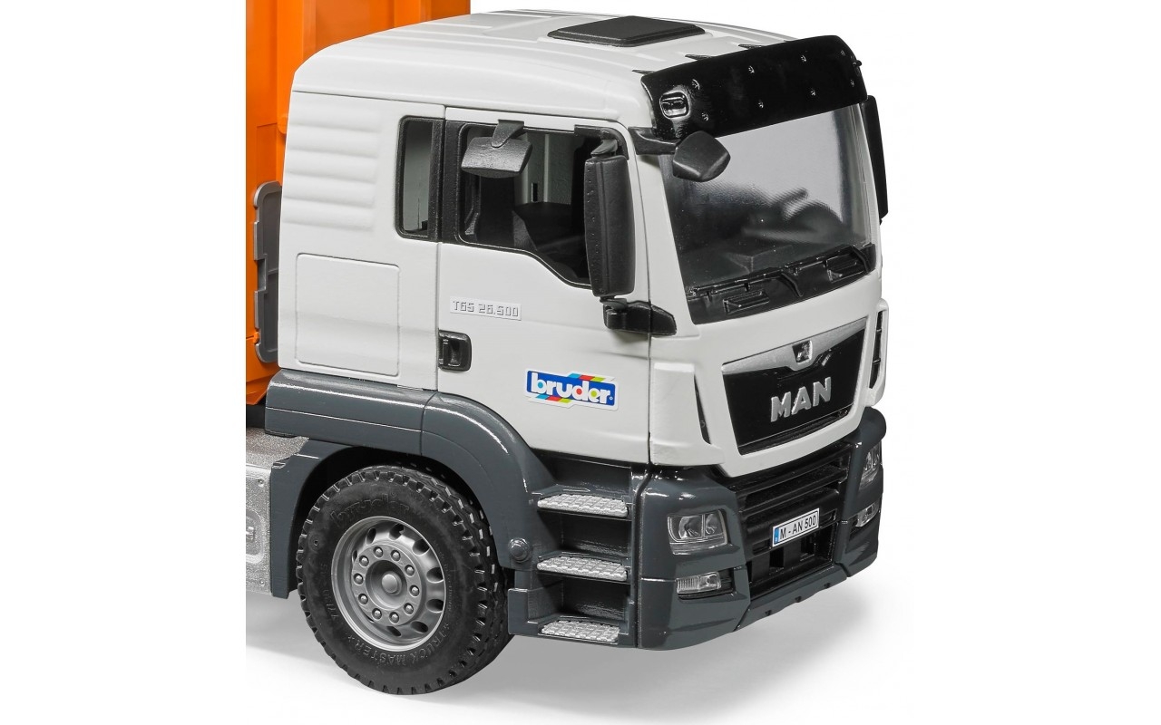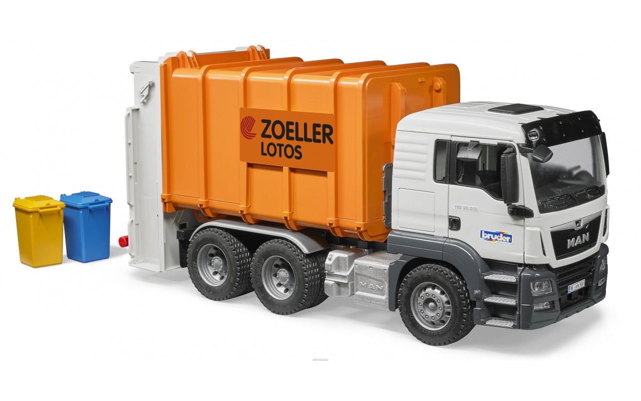 Машинка Bruder Сміттєвоз MAN TGS із заднім завантаженням, помаранчевий 1:16 (03762).