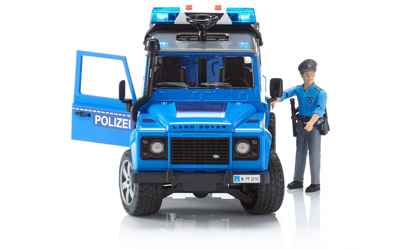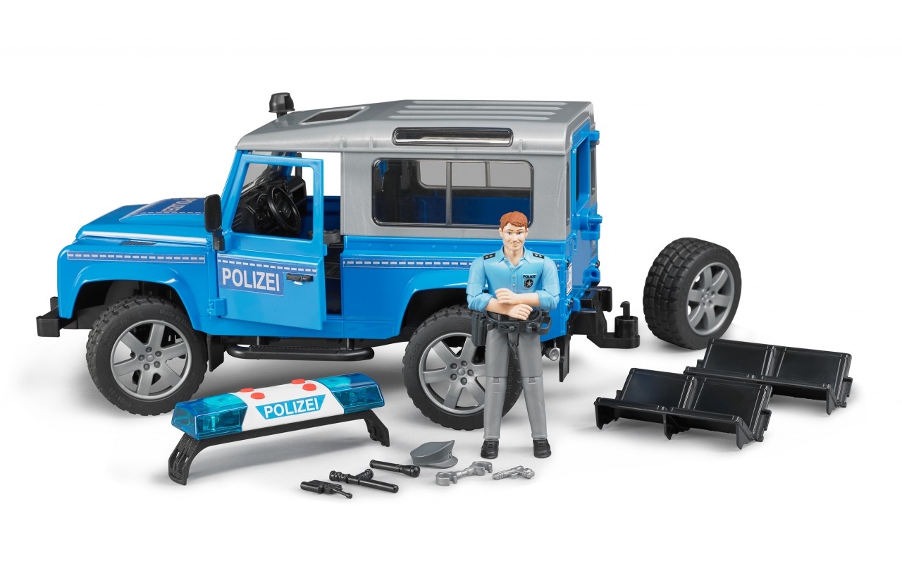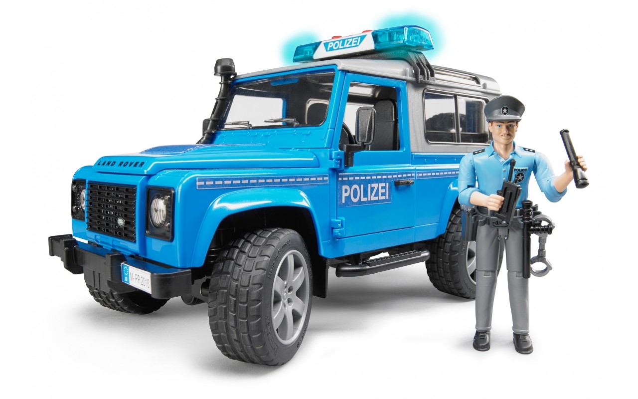 Машинка Bruder позашляховик Land Rover Defender з фігуркою поліцейського 1:16 (02597)