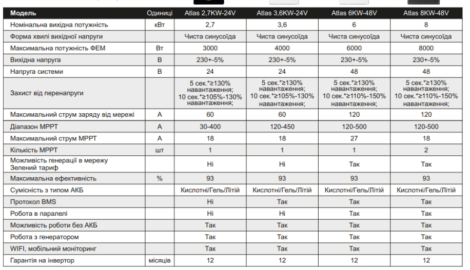 Технічні характеристики інвертору Atlas 3,6KW-24V