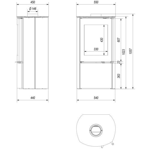 - Діаметр димаря: 150 мм