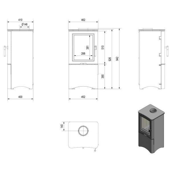 - Діаметр димаря: 150 мм