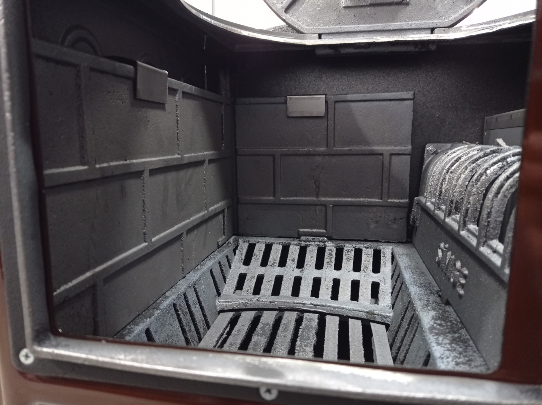 Піч отримала нові дверцята топки зі склом та системою "чисте скло" для більшої зручності, а також повністю чавунну футеровку.