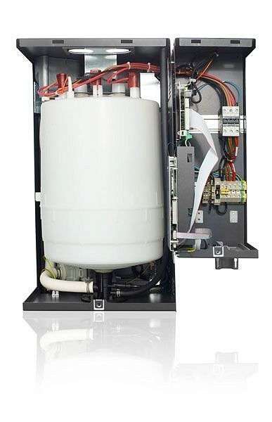 • Управління парозволожувачем відбувається завдяки блоку автоматики з дисплеєм, на якому можна задавати низку необхідних налаштувань для комфортного використання. Блок можна встановити окремо від парогенератора в суміжному приміщенні і тим самим заощадити місце для іншого обладнання.