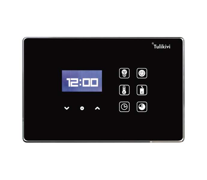Сучасна та надійна панель керування сенсорним екраном Tulikivi з сенсорними кнопками та невеликим яскравим дисплеєм зробить відпустку в сауні ще більш комфортною та приємнішою. Модель пропонується у двох кольорах - чорно -білих. Якості розвитку фінського бренду Tulikivi впізнаваний у всіх кутах, від надійного датчика, що закінчується багатофункціональністю управління. Ви можете встановити пульт дистанційного керування як зовні в місці, зручному для використання, так і всередині пари з установкою на висоті не більше 1 метра та з умовою окремого включення освітлення. Чітке меню управління на пульті дистанційного керування та інформативний дисплей допомагають запустити у роботу електричний удар, встановіть температуру нагріву пари з точністю 1 градусів, відрегулюйте нагрівання каменів, увімкніть освітлення і навіть Встановіть таймер із затримкою до 12 годин. Це допоможе заздалегідь підготувати парильну для гарного відпочинку.