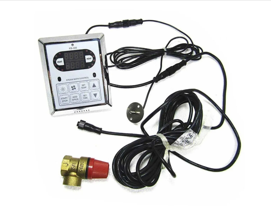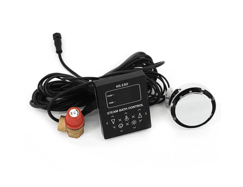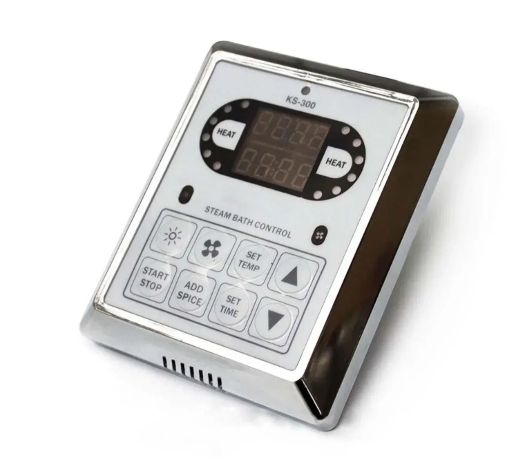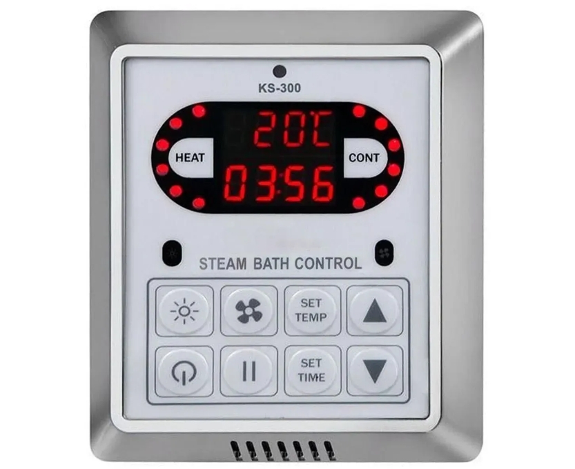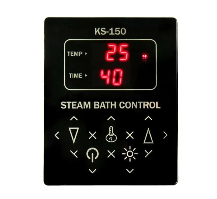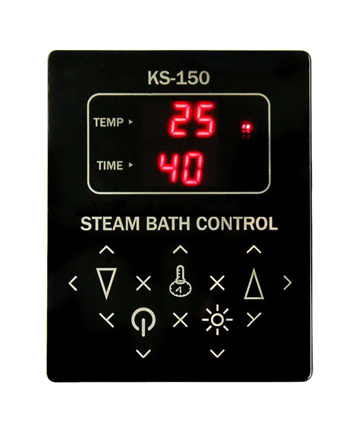 Розроблений для керування парогенераторам та EcoFlame серії KSA пульт KS 150 або KS 300 забезпечує відмінний відпочинок у сауні з вологим мікрокліматом у парилці. У його функції входить управління освітленням та вентиляцією, відстеження температури та часу роботи парогенератора, запуск та зупинка видачі пари. Сучасний на вигляд блок управління є прямокутною формою сенсорної панелі з яскравим цифровим дисплеєм, на якому відображаються поточні показники температури і часу. За допомогою дистанційного пульта управління завжди можна виставити роботу парогенератора на потрібний час. Чорний фон панелі з білими покажчиками функцій управління виглядає стильно та красиво в будь-якому інтер'єрі. Робота блоку управління парогенератором завжди точна без збоїв, що забезпечує приємну атмосферу без порушення спокійного відпочинку.
