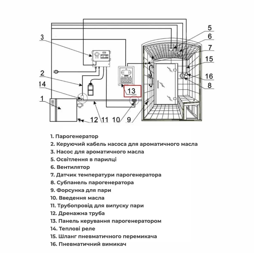 Модель пультуEcoFlame KS 150встановлюється за межами парильного приміщення (наприклад: кімната відпочинку)