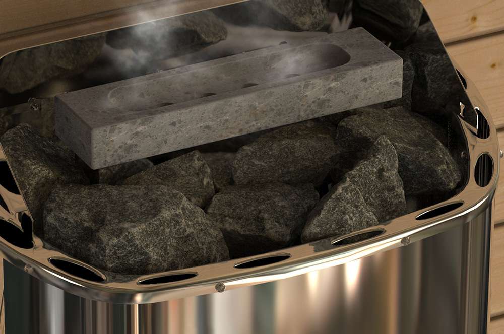 • Зволожувач - Випарник - Парогенератор SAWO HP01-071 міститься між нагрівальними елементами та камінням.