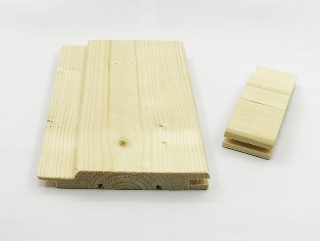 Матеріал: канадський кедр - ЗРОЩЕНІ БРУСОЧКИ канадського кедра, з трьох сторін покриті якісним шпоном з канадського кедра, не покрита шпоном лише нижня сторона вагонки.